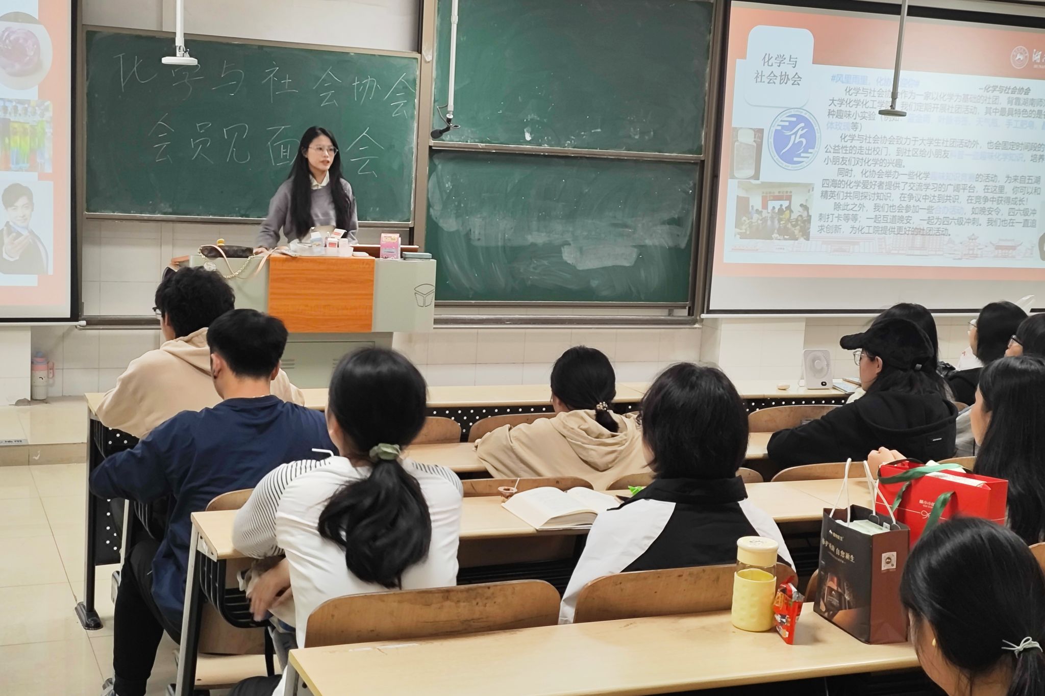 (通讯员 蒋依欣)11月16日19时,allwincity万象城官方网站化学与社会协会在至善楼110教室举行会员见面会暨第一次会员会议。此次见面会由理事长蒋依欣统筹规划,理事会成员积极组织开展,化协全体会员参加。