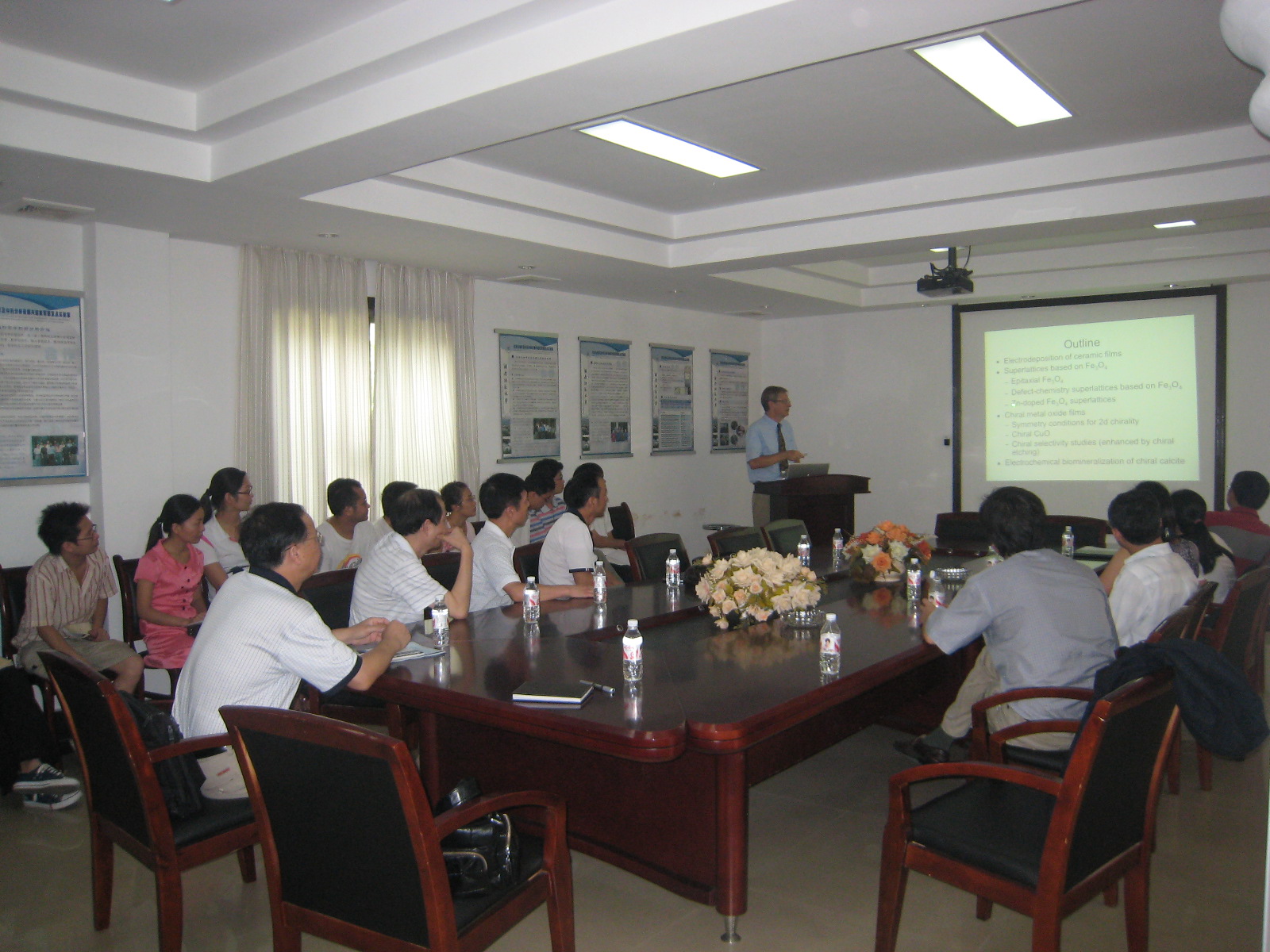 8月22日上午,美国密苏里科技大学Jay Switzer教授在化学生物学及中药分析教育部重点实验室主任谢青季教授的陪同下参观了实验室,10:00在化学生物学及中药分析教育部重点实验室会议室作了题为“Electrodeposition of Ceramic Superlattices and Chiral Films”的学术报告。报告中教授主要从如何用电沉积法制备各种金属氧化物膜、磁性氧化物超晶格以及手性氧化物膜等方面作了精彩讲述。Prof. Jay Switzer的相关研究在Nature (1篇),Science (4篇),JACS,Angew. Chem., Adv. Mater.,Chem. Mater.和Environ. Sci. Technol.等刊物发表。allwincity万象城官方网站院长尹笃林教授及相关教授和研究生参加了报告和讨论。